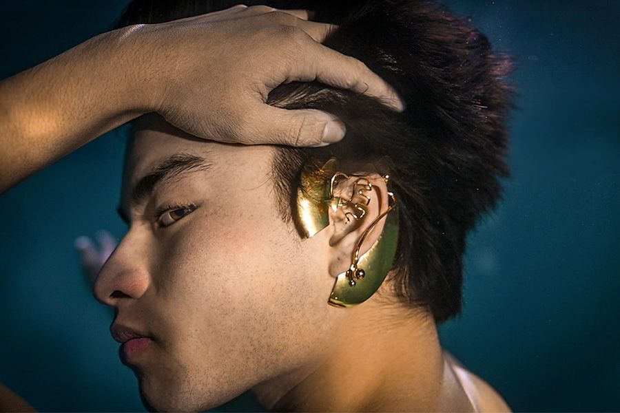 Afbeelding van acteur en activist Chella Man’s sieraden collectie in samenwerking met modemerk Private Policy
