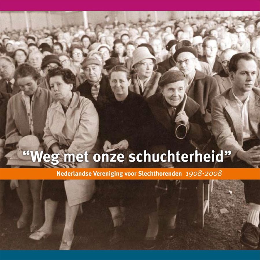 Boek van Nederlandse Vereniging van Slechthorenden (voorloper van Stichting Hoormij/NVVS) ‘Weg met onze schuchterheid’ (2008)