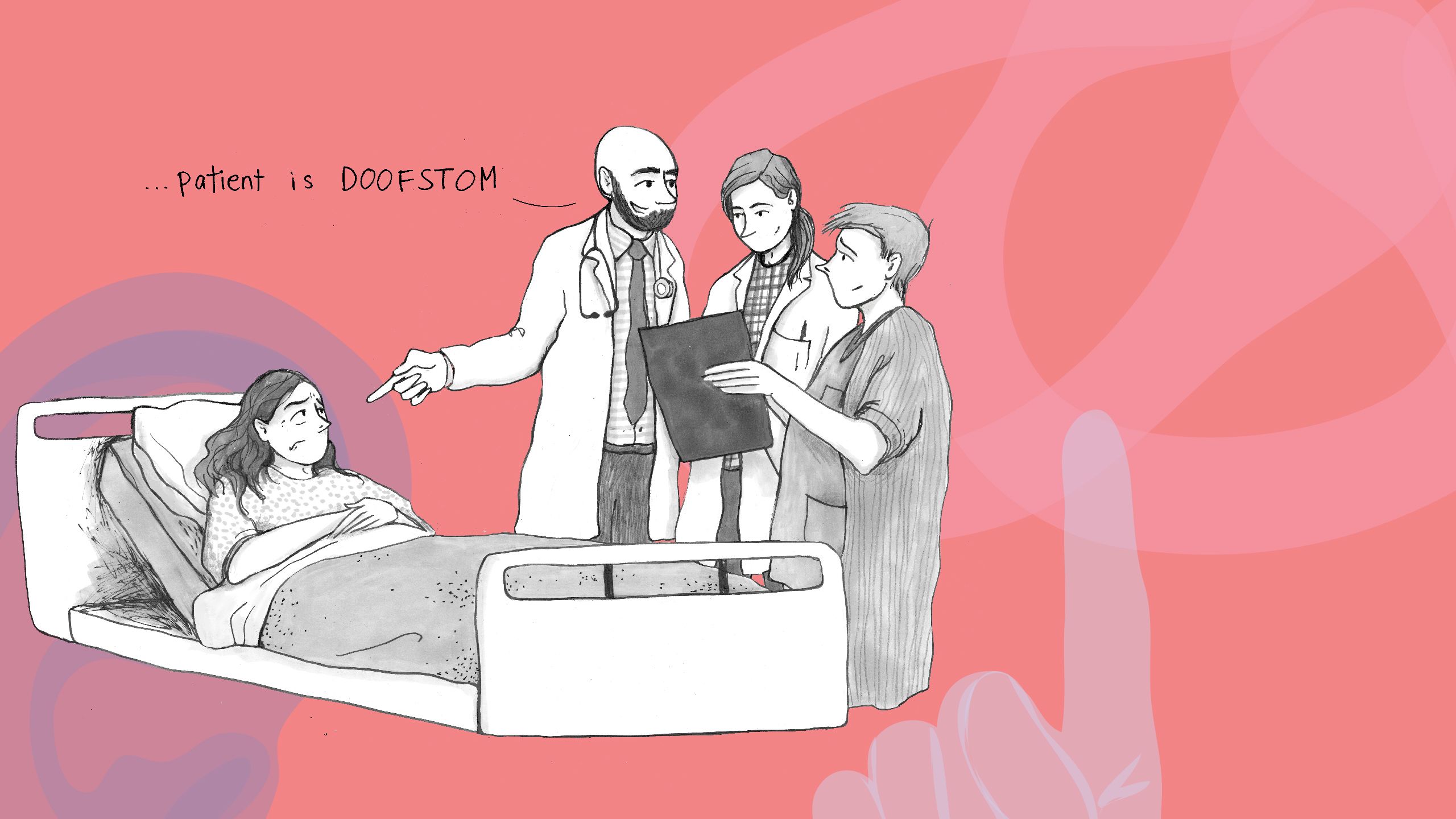 De stethoscoop zien als obstakel is ironisch, want het is eigenlijk een gehoorapparaat, gelijk aan de gehoortoeters van vroeger.