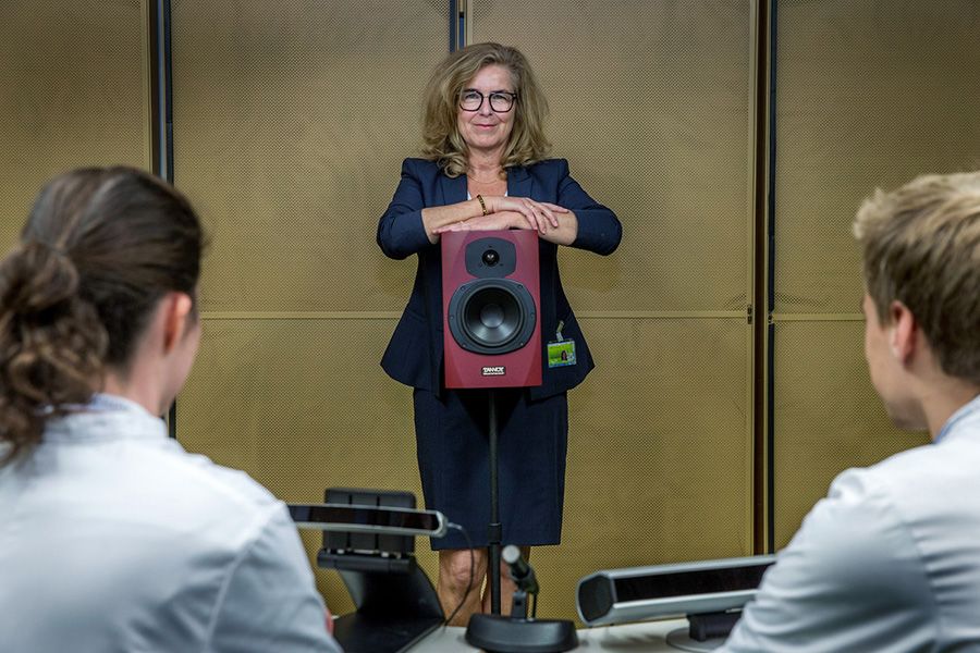 Tijdens de colleges ondervindt ze weinig weerstand bij docenten. "Tot nu toe reageren ze goed", zegt ze. "Iedereen is bereid het microfoontje te dragen. Wat dat betreft valt het me niks tegen. En ik volg gewoon het studieprogramma."