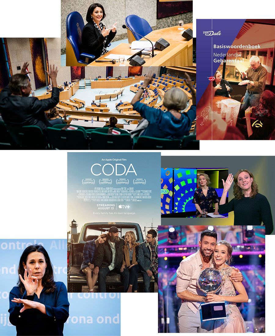 Steun van de Tweede Kamer aan de wet erkenning NGT / Van Dale Basiswoordenboek Nederlandse Gebarentaal / Gebarentolk persconferenties / film CODA, Oscar winnaar 2022 / Gebarentolk NOS (Jeugd)Journaal / Strictly Come Dancing winnares Rose Ayling-Ellis