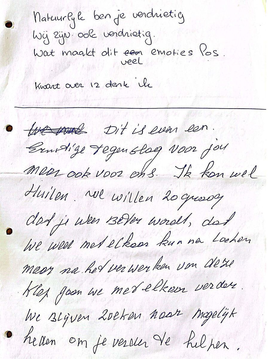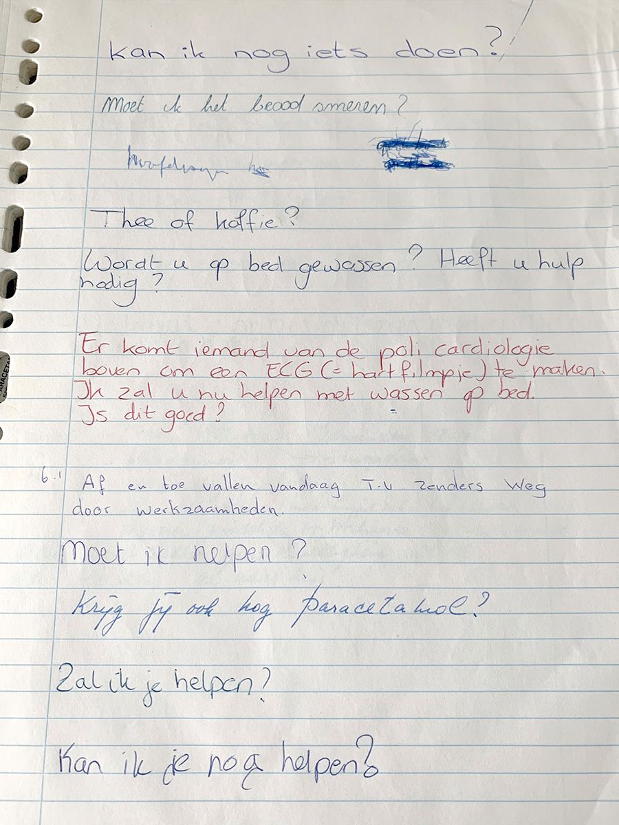 Een bladzijde uit het schrijfschriftje van Annemieke Ceton