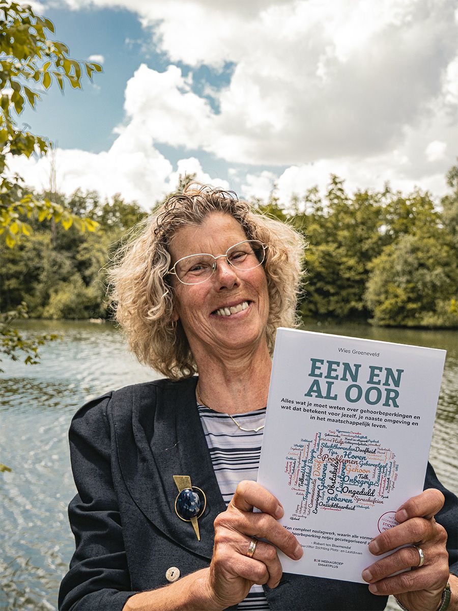 “Ik ben Wies Groeneveld, auteur van het boek Een en al oor. In mijn kindertijd ben ik door meningitis slechthorend geworden. Door otosclerose werd ik later helemaal doof. Sinds 2014 heb ik een cochleair implantaat. Dat is mijn redding. Ik vang slechts aan één oor geluiden op, zodat ik vaak niet weet waar geluiden vandaan komen. Lastig, zeker in het verkeer.”