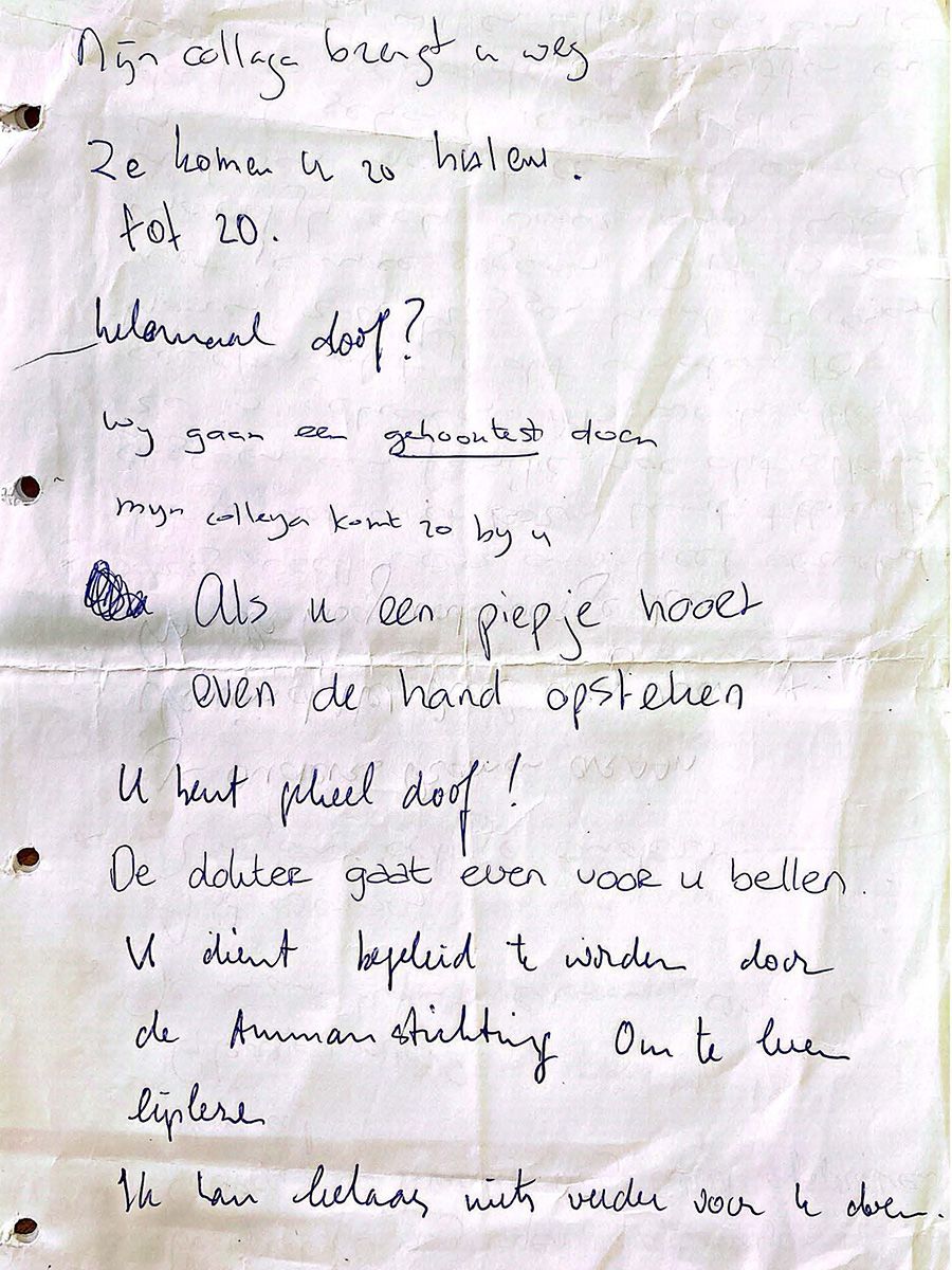 Er werd van alles geprobeerd, maar zijn gehoor kwam niet terug, en hij kon alleen nog schriftelijk of met gebaren worden benaderd.